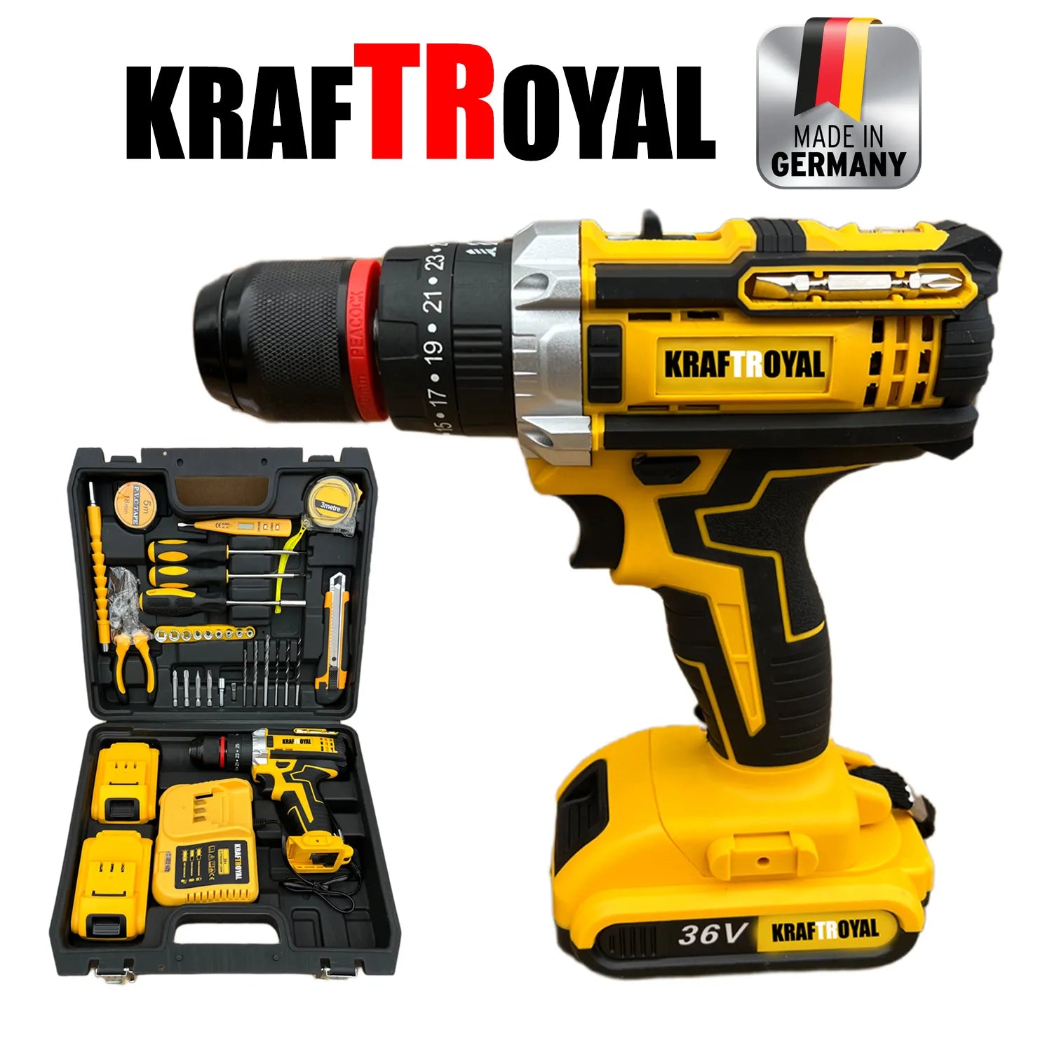 Акумулаторен ударен винтоверт KraftRoyal с 2 батерии 36v. С метален патронник