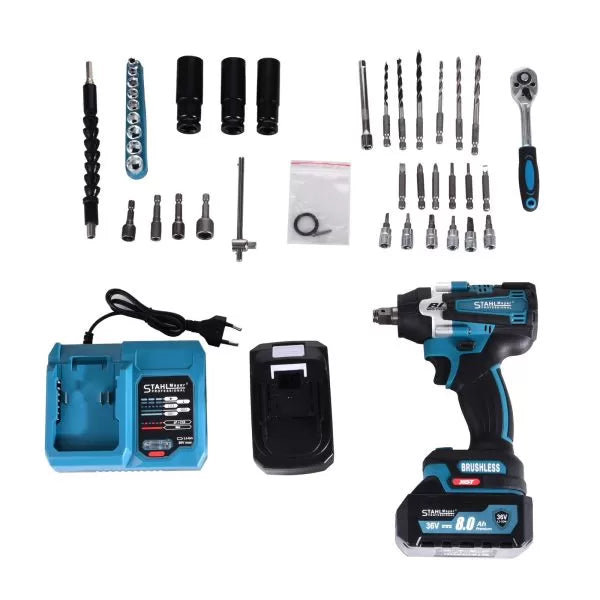 Акумулаторен Ударен Гайковерт на 1/2 и Импакт. 2v1 StahlMayer 36v – 850nm. + 40 части инструменти