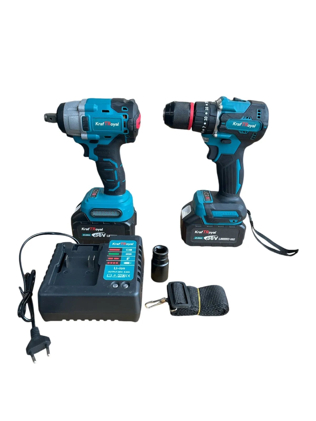 Акумулаторни безчеткови Гайковерт и Винтоверт 36V-2x 8AH бат. в куфар KRAFTROYAL с 3 режима на работа