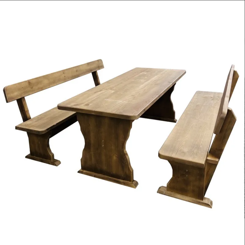 Дървен градински комплект Маса с 2 пейки 120 на 80см.