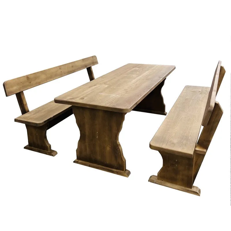 Комплект Дървена маса с 2 пейки 200см на 80 см. Баварски