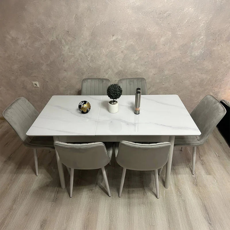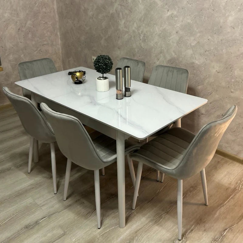 Комплект трапезна разтегателна маса със закалено стъкло и 6 стола Лорета