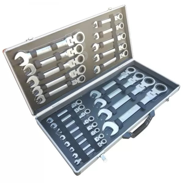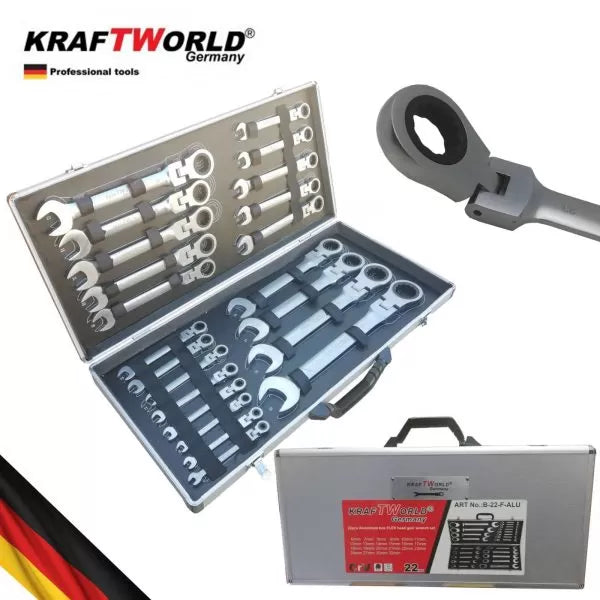 К-т звездогаечни чупещи тресчотни ключове от 6мм до 32мм , 22 части в метален куфар Kraft Royal
