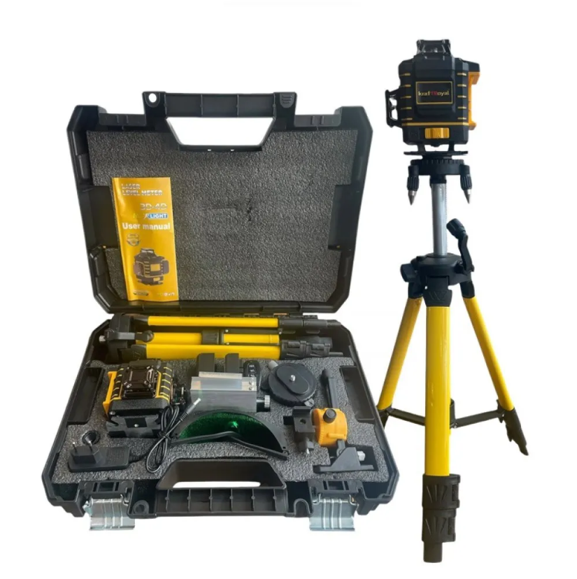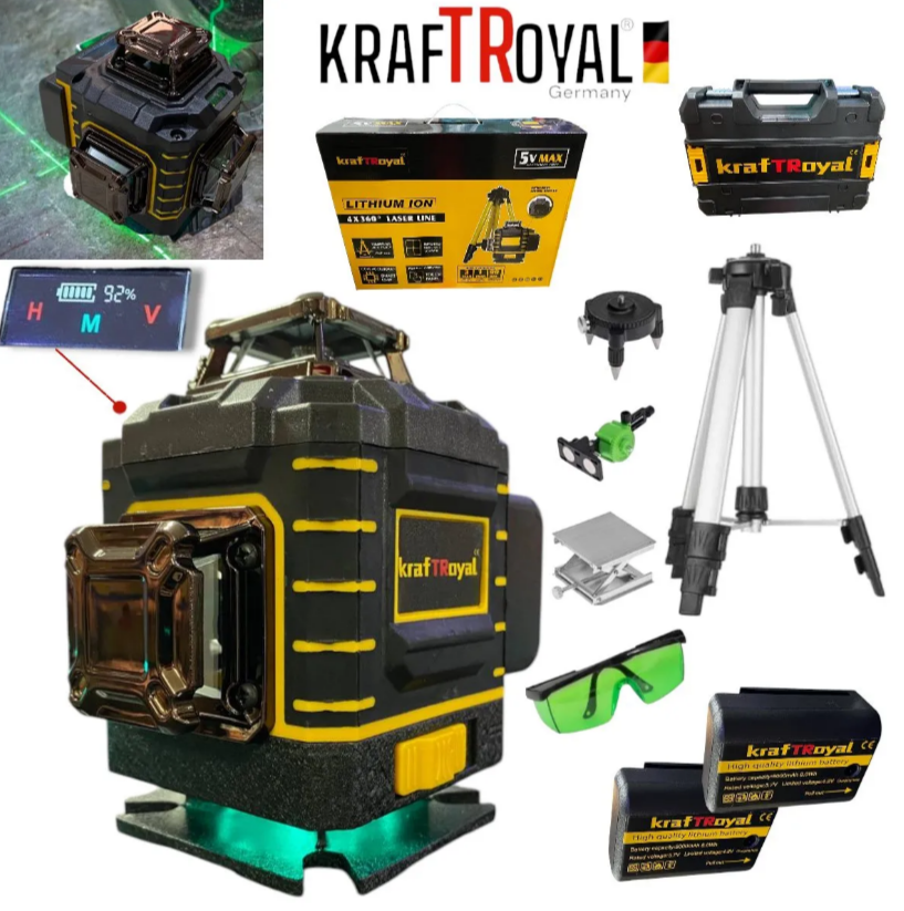 4D ЛАЗЕРЕН НИВЕЛИР с 16 линии KRAFTROYAL самонивилиращ се, със зелен лазер и трипод + индикатор на батерията.